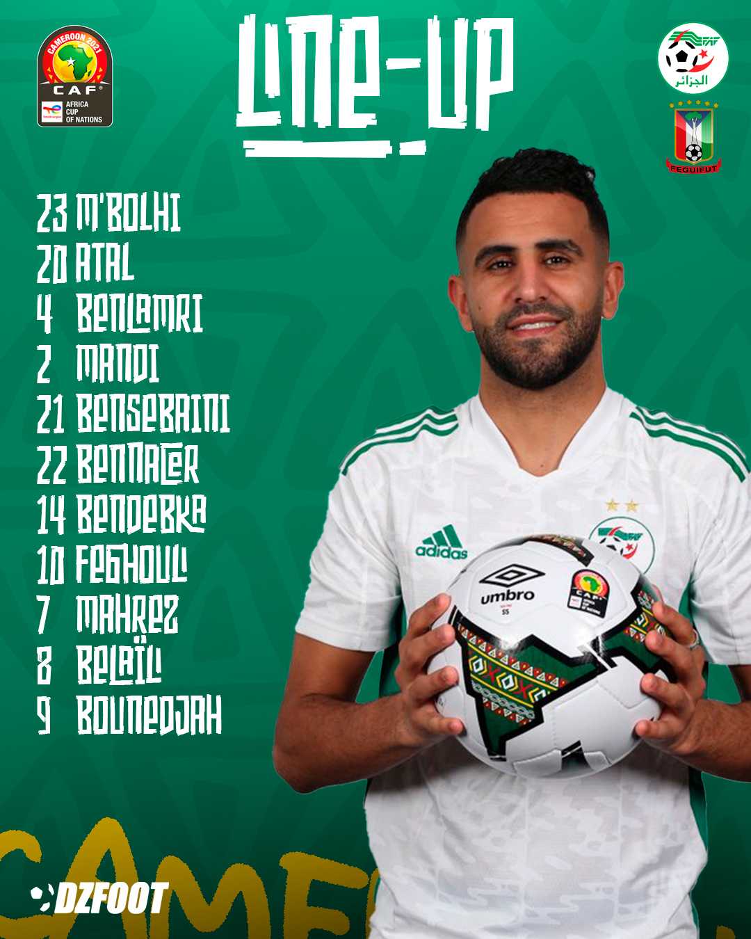 Après l’entame ratée à la CAN 2021 contre la Sierra Leone (0-0), le sélectionneur de l’Algérie, Djamel Belmadi, a procédé à des choix forts en effectuant 4 changements dans l’équipe alignée contre la Guinée Equatoriale ce dimanche au Stade Japoma (20h). Benlamri en défense, Bendebka et Bennacer (retour de suspension) au milieu de terrain et Bounedjah en pointe intègrent le onze de départ à la place de Bedrane, Belkebla, Brahimi et Slimani.