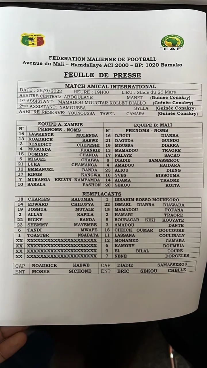 Les compos de Mali-Zambie