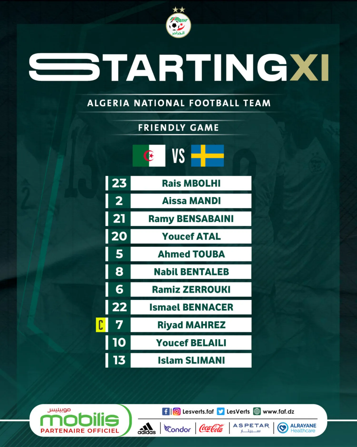 Les compos de Suède-Algérie