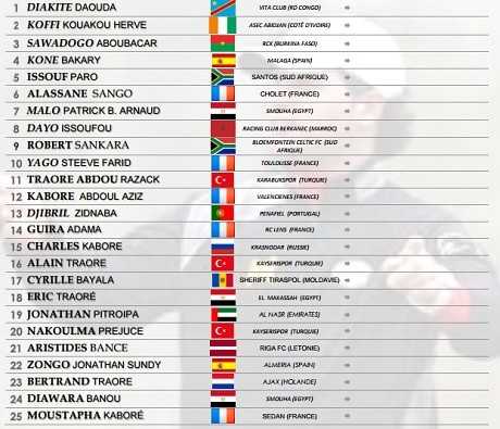 La liste du Burkina Faso contre l’Afrique du Sud :