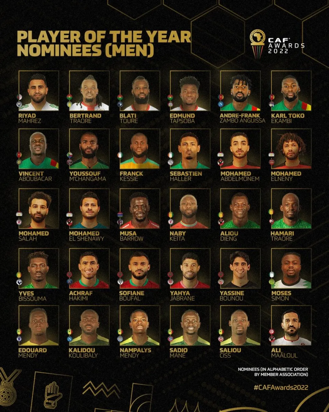La liste des 30 nommés pour le Joueur Africain de l’année 2022