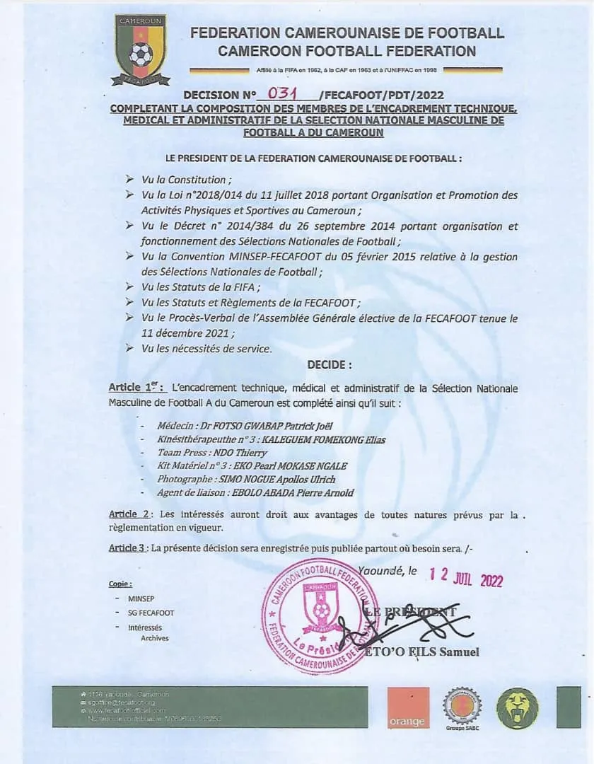 Plusieurs autres staffs rejoignent également le groupe, à l’instar du docteur Fotso. Au Mondial, les Lions Indomptables affronteront la Suisse, la Serbie et le Brésil dans le groupe G.