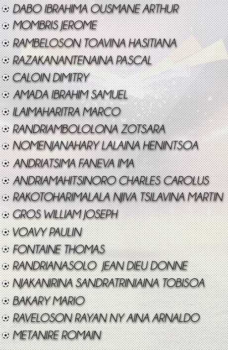 Autour du capitaine Faneva Andriatsima, on retrouve Romain Métanire (Reims), convoqué pour la première fois le mois dernier, ainsi qu’un nouveau venu, le milieu de terrain Rayan Raveloson, auteur d’un début de saison intéressant avec Troyes. En raison de la bousculade mortelle survenue le mois dernier au stade Mahamasina, suspendu par la CAF, le match retour aura lieu à Vontovorona, à l’ouest de la capitale malgache.