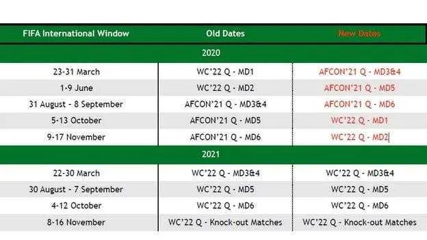 Le calendrier actualisé des éliminatoires de la CAN 2021 et du Mondial 2022