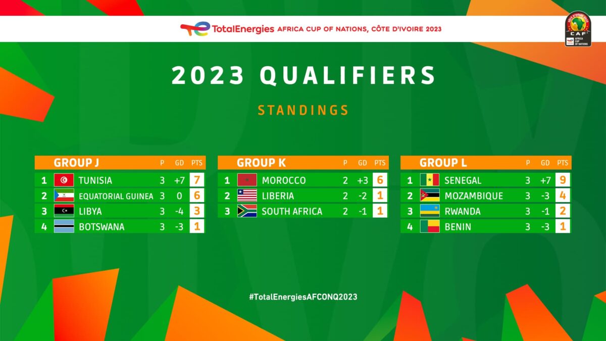Le classement groupe par groupe des éliminatoires de la CAN 2023