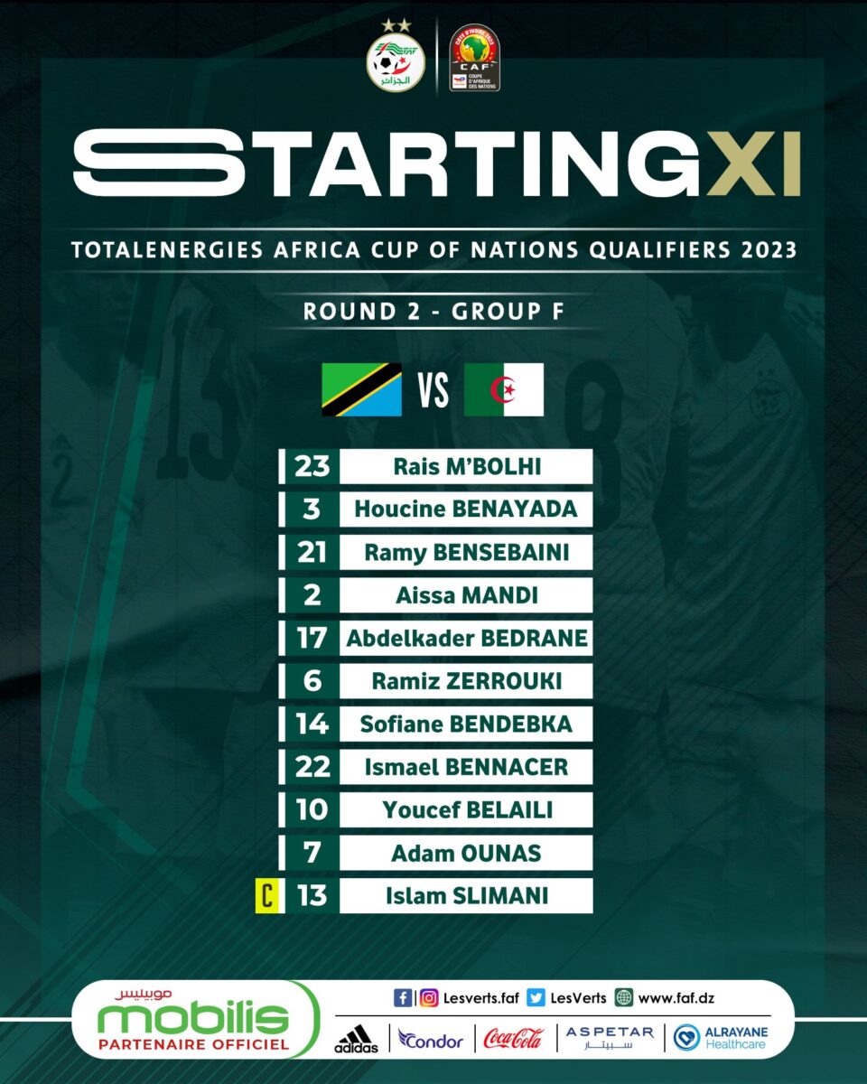 Avec un onze remanié, les Algériens sont pourtant entrés timidement dans une partie longtemps très fermée ou seul un contact litigieux sur Bendekba dans la surface procurait quelques frissons. Au fil des minutes, ce sont même les Taifa Stars qui se montraient de plus en plus percutants sur leurs transitions et Samatta disposait d’une énorme occasion mais sa tête ne faisait finalement que flirter avec le poteau de M’Bolhi. Juste avant la mi-temps, tout basculait sur un coup de pied arrêté : un coup franc de Belaïli, superbement dévié au premier poteau par Mandi pour la tête victorieuse de Bensebaini, qui ouvrait le score (0-1, 45e+2).