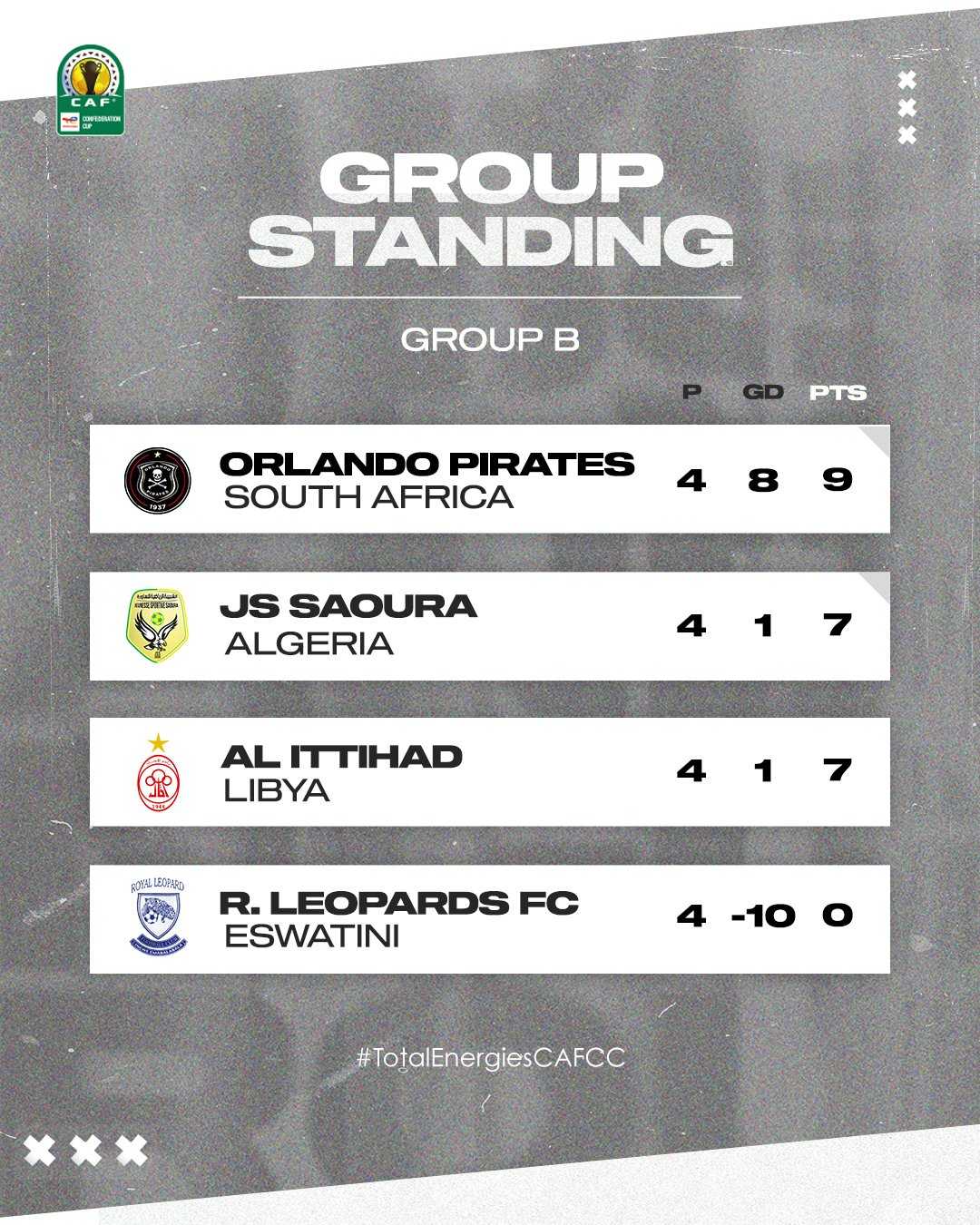 Dans la poule B, le suspense reste entier puisque les Algériens de la JS Saoura ont disposé d’Al Ittihad (1-0) pour revenir à hauteur des Libyens à la 2e place. Le duo ne possède que deux points de retard sur le leader, les Orlando Pirates, qui ont déroulé 3-0 contre les Royal Léopards d’Eswatini.