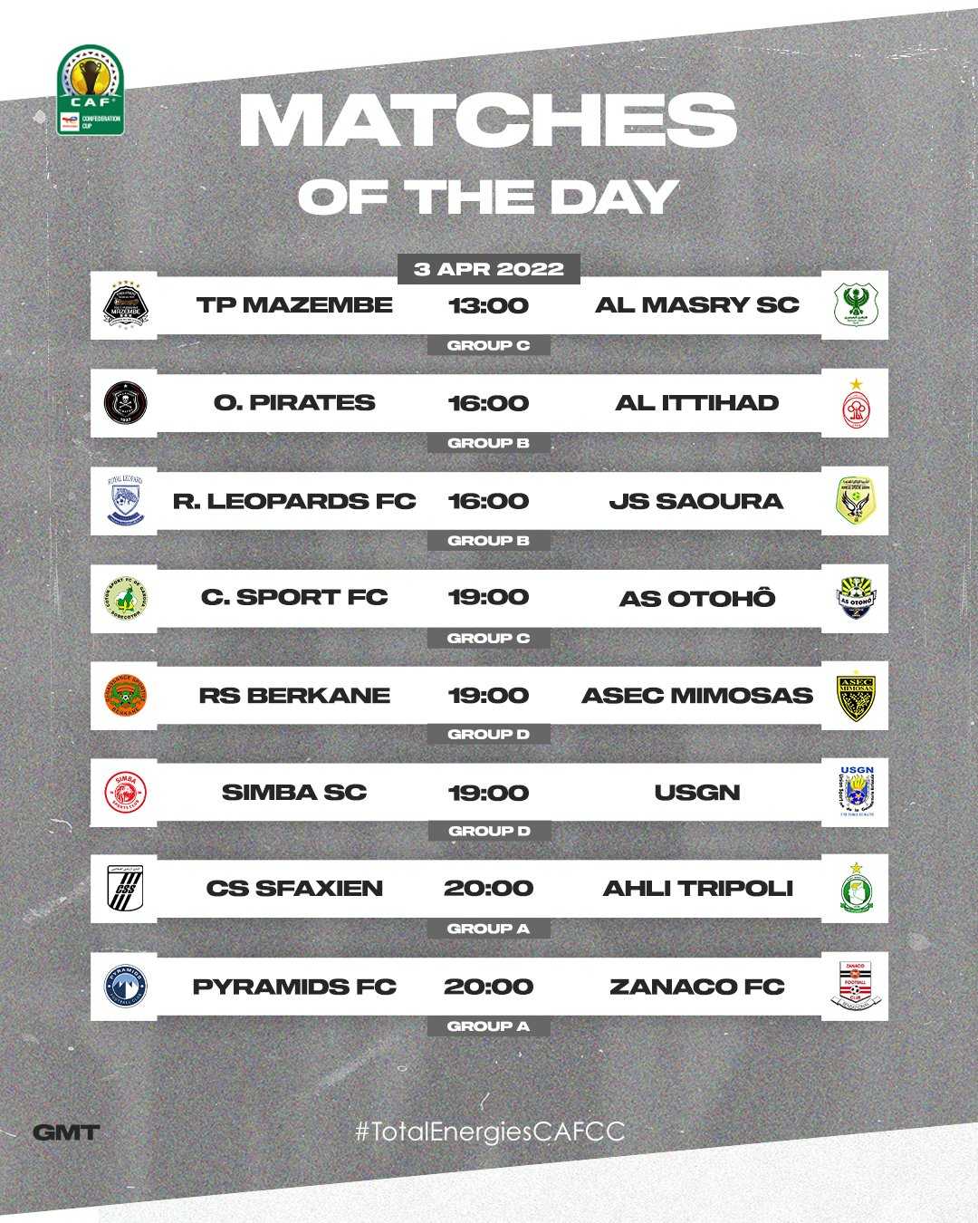 Al Ahli Tripoli et le FC Pyramids se disputeront la première place à distance dans le groupe A, tandis qu’une finale opposera le TP Mazembe à Al Masry, déjà qualifiés, dans la poule C. Battus 2-0 à l'aller, les Congolais doivent impérativement gagner pour finir premiers au nez et à la barbe des Egyptiens.