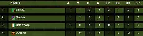 Comme le groupe A du CHAN 2018, la poule B peut rendre son verdict dès la 2e journée ce jeudi à Marrakech. Pour cela, il faut que la Zambie enchaîne contre la Côte d’Ivoire puis que la Namibie batte l’Ouganda. Dans ce cas, Zambiens et Namibiens seraient qualifiés et Ivoiriens et Ougandais éliminés.