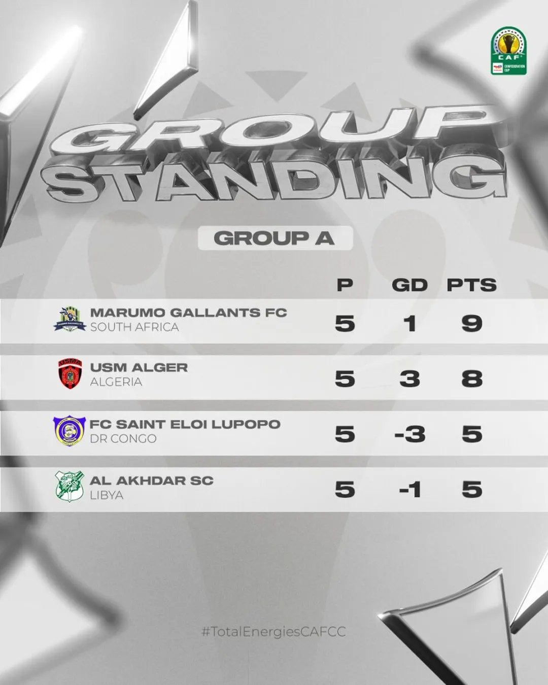 Dans le groupe A enfin, l’USM Alger a assuré l’essentiel en arrachant l’égalisation à l’extérieur contre Saint-Éloi Lupopo (1-1). Junior Aubiang avait ouvert le score pour les Congolais (72e), mais un but contre son camp de Kateregga au bout du temps additionnel (90e+5) a permis à l’USMA d’arracher un point. Les Algériens pourront se contenter d’un match nul à domicile contre Al Akhdar lors de la dernière journée pour se qualifier. Cette mission, les Sud-Africains l’ont déjà remplie malgré leur défaite surprise 4-1 face aux Libyens. Rendez-vous le 2 avril pour le verdict final.