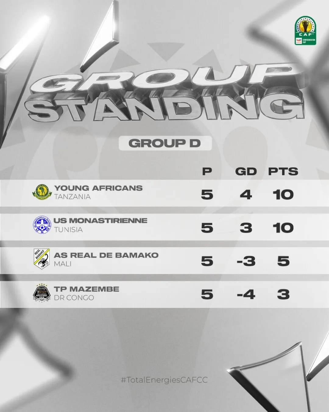 Le résultat le plus marquant est venu du Mali où le TP Mazembe a subi sa 4e défaite dans le groupe D en s’inclinant face au Real Bamako (2-1), un revers synonyme d’élimination. Local de l’étape, le Malien Fily Traoré avait pourtant redonné espoir pour les Congolais (67e), mais un doublé d’Ousmane Kamissoko (45e+2, 61e) a scellé le sort des Corbeaux de Lubumbashi, qui étaient reversés de la Ligue des champions et qui bouclent une nouvelle campagne continentale très décevante… Malgré ce succès, le Real Bamako est également éliminé puisque les Tanzaniens de Young Africans ont validé leur présence en quarts de finale en faisant chuter l’US Monastir (2-0), déjà qualifiée.