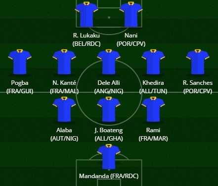 A la récupération, la valeur sûre Sami Khedira (Juventus) et l’infatigable N’Golo Kanté, bluffant cette saison avec Leicester, assureront à cette équipe de remporter la bataille de l’entrejeu et de donner de bons ballons à Paul Pogba (Juventus), star annoncée de cet Euro, et Renato Sanches (Benfica), la nouvelle recrue du Bayern. Très doué balle au pied, ce duo sera chargé d’asseoir la maîtrise technique de ce onze, avec Dele Alli, révélation de la saison à Tottenham, en électron libre.