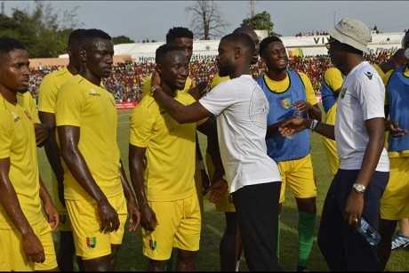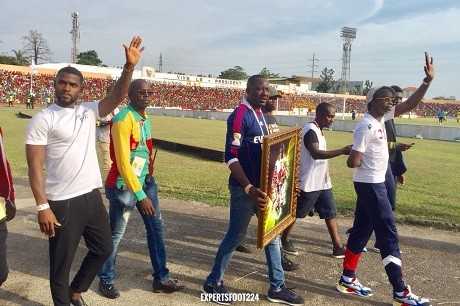 Contraint de mettre un terme à sa carrière à seulement 28 ans en raison de problèmes cardiaques, l’ancien international guinéen Abdoul Razzagui Camara a comme prévu été honoré dimanche au stade du 28-Septembre de Conakry avant le choc des éliminatoires de la CAN 2019 entre le Syli National et la Côte d’Ivoire (1-1). Accompagné pour l’occasion du célèbre rappeur MHD, l’ancien attaquant a eu droit à un beau tour de stade. Après s’être vu remettre un tableau relatant sa carrière, il a également salué ses ex-coéquipiers. De belles images.