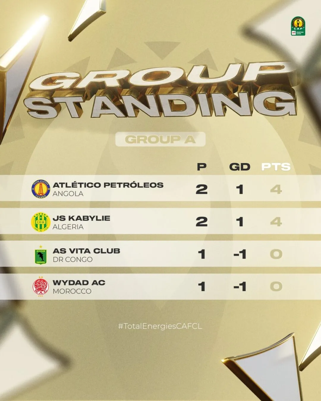 Après son entrée ratée (défaite 1-0 contre la JS Kabylie), le Wydad Casablanca, champion sortant, doit à tout prix se ressaisir à domicile face au Petro de Luanda, invaincu et qui le devance de quatre points. Le lendemain, dans l’autre match de ce groupe A, la pression sera aussi énorme sur l’AS Vita Club qui a elle aussi très mal démarré en s’inclinant à domicile contre le Petro de Luanda (1-2) et qui a droit à une seconde chance à la maison face à la JS Kabylie, invaincue avec 4 points d’avance.