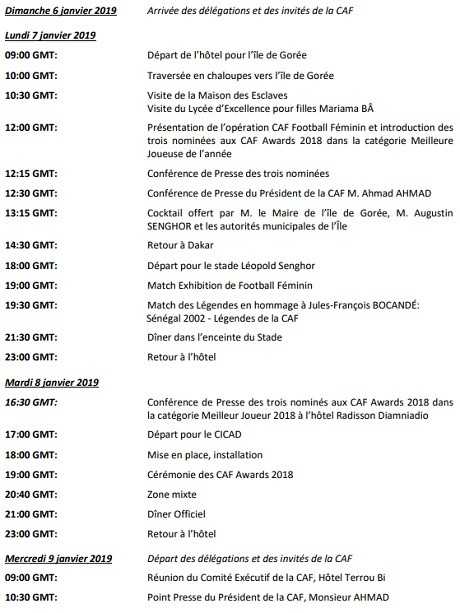 Le mardi 8, le Joueur Africain de l’année devrait ensuite être connu entre 19h GMT et 20h40 GMT.