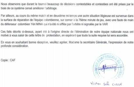 La lettre de réclamation du Sénégal
