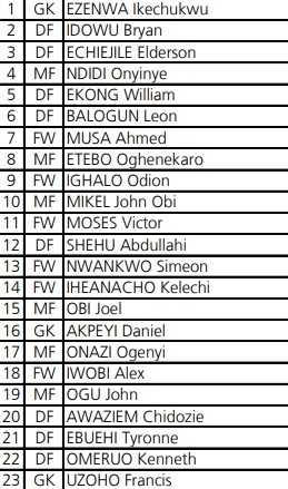 Les numéros de maillots du Nigeria pour le Mondial