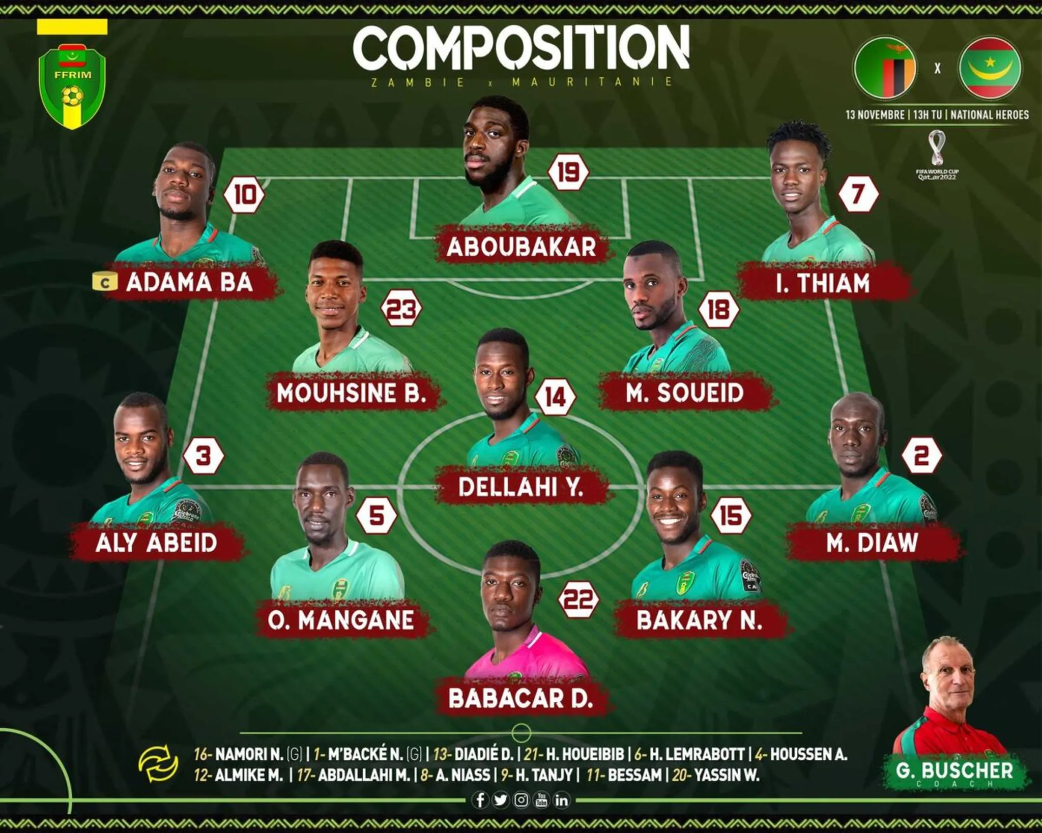Un but rapidement suivi de deux autres puisque l’attaquant des Glasgow Rangers, Fashion Sakala, doublait la mise après avoir été lancé à la limite du hors-jeu par Daka (2-0, 34e), avant de frapper à nouveau sur un penalty obtenu par Kangwa après une faute du gardien mauritanien Babacar Diop (3-0, 45e+1). Après ce naufrage en l’espace de 12 minutes, les Mauritaniens pliaient à nouveau en seconde période sur un nouveau but de Fashion Sakala, auteur d’un triplé (4-0, 63e) ! Voilà les Zambiens en vie pour encore quelques heures au moins. De son côté, la Mauritanie confirme ses difficultés du moment et les largesses défensives vues ce samedi inquiètent à moins de deux mois de la CAN…