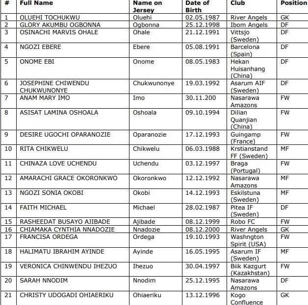 La CAN féminine 2018 débute samedi au Ghana avec le pays-hôte, l’Algérie, le Mali, et le Cameroun dans le groupe A et le Nigeria (tenant du titre), l’Afrique du Sud, la Zambie et la Guinée Equatoriale (réintégrée de dernière minute) dans la poule B. Chaque sélection a établi une liste de 21 joueuses pour la compétition, convoquant au passage des expatriés qui évoluent notamment en France (20 joueuses), aux Etats-Unis (7), en Suède (7) et en Espagne (4). Voici les listes de toutes les sélections avec notamment la Nigériane Asisat Oshoala et la Camerounaise Gaëlle Enganamouit en tête d’affiche.
