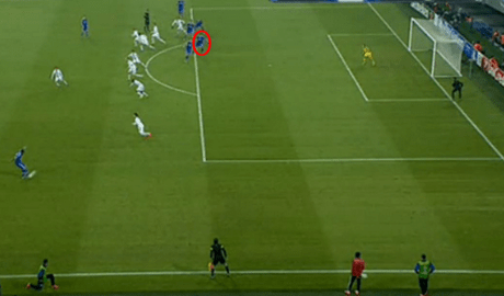 Les images sont formelles. A la réception d’un coup franc de Farfan, le défenseur, tout comme trois autres de ses coéquipiers s’est fait piégé par la défense de Bâle qui joue très bien le coup et remonte, mais le juge de touche ne bronche pas et laisse Matip venir ajuster le portier suisse.
