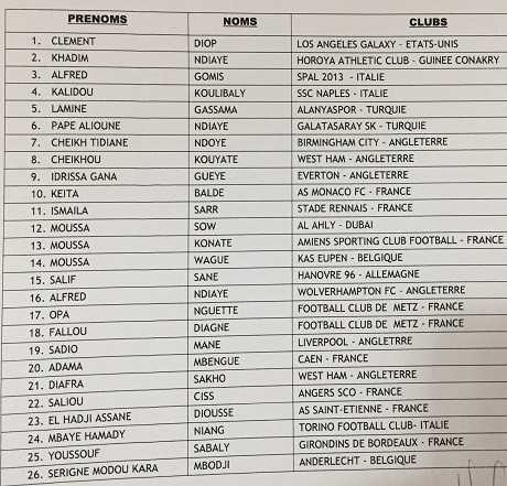 Comme pressenti, le latéral droit de Bordeaux Youssouf Sabaly a lui aussi accepté de répondre à l’appel de son pays d’origine et fête sa première convocation avec le gardien de SPAL en Serie A, Alfred Gomis. A noter aussi le retour de l’attaquant de West Ham, Diafra Sakho. L’absence de Younousse Sankharé, pourtant en forme avec Bordeaux, fera en revanche jaser…